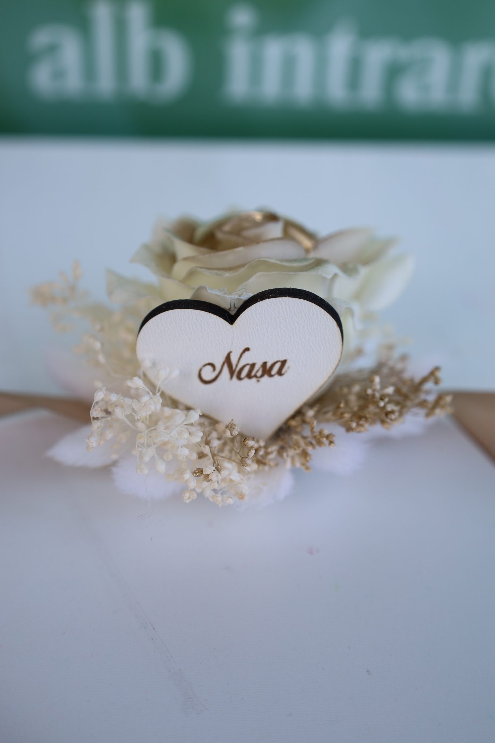 Corsaj pentru încheietura mâinii,paglica de saten ,trandafir de săpun și flori pentru petrecerea de nuntă,personalizarea este inclusa in pret trebuie doar sa ne specificati in descriere textul