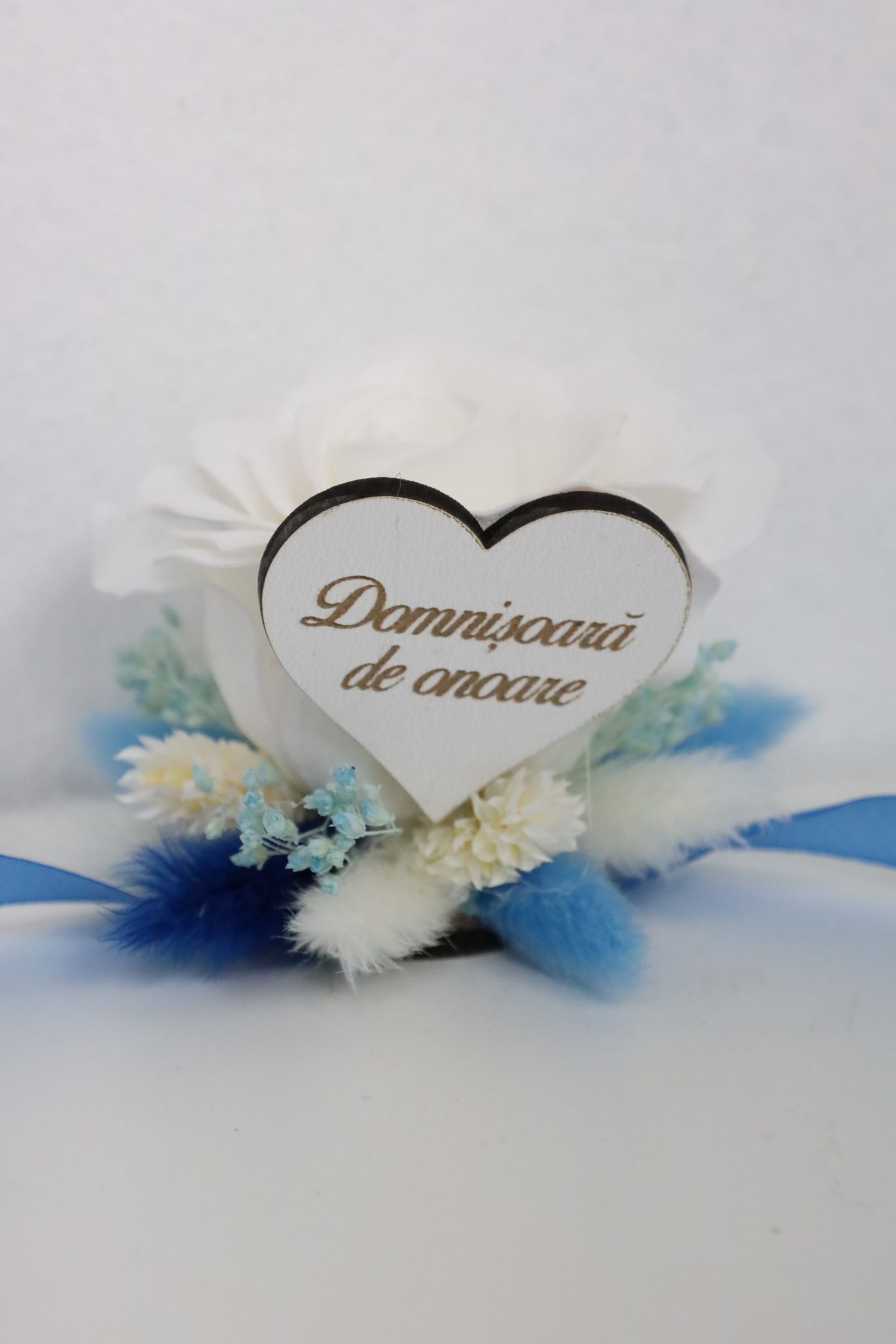 Corsaj pentru încheietura mâinii,paglica de saten ,trandafir de săpun și flori pentru petrecerea de nuntă,personalizarea este inclusa in pret trebuie doar sa ne specificati in descriere textul