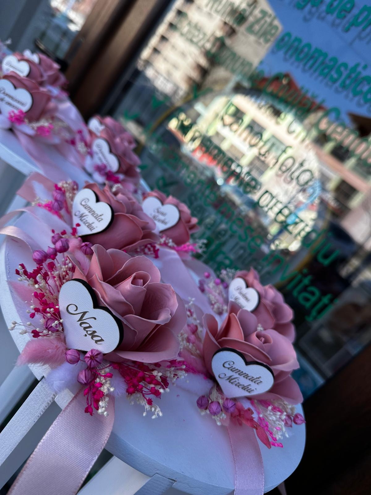Corsaj pentru încheietura mâinii,paglica de saten ,trandafir de săpun și flori pentru petrecerea de nuntă,personalizarea este inclusa in pret trebuie doar sa ne specificati in descriere textul