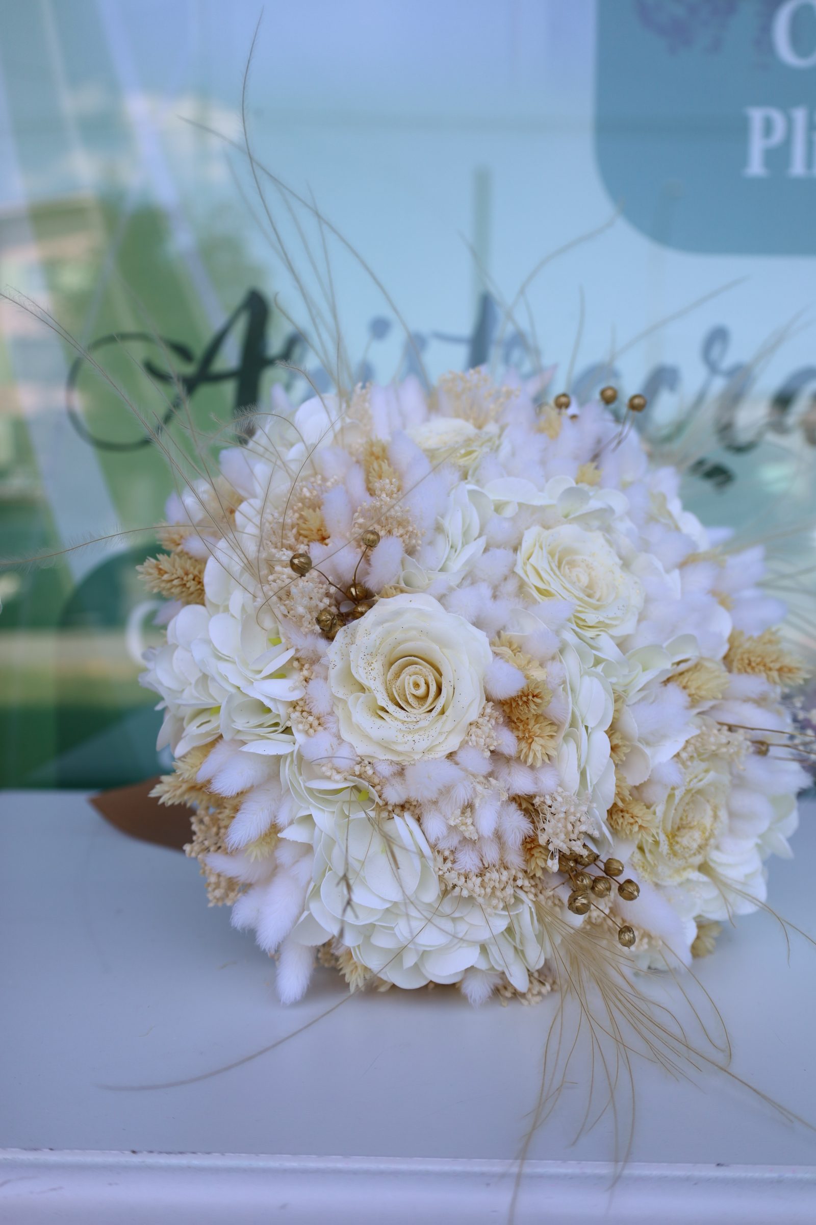 Buchet Mireasa, trandafiri de sapun si ,flori uscate