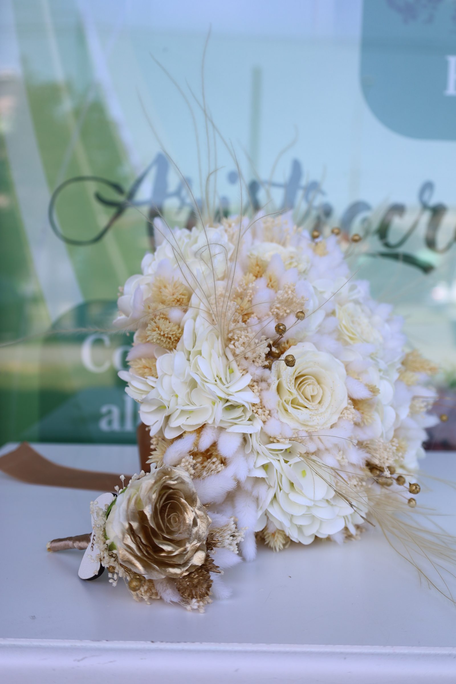 Intr-unul dintre cele mai frumoase momente din viata ta, trebuie sa ai o amintiri fabuloasa care va avea puterea de a reflecta seara ta speciala. Acest buchet poate fi tinut atat de mireasa, cat si de nasa, pastrandu-si multi ani indelungati aspectul si culoarea. Buchetul contine trandafiri de sapun,flori uscate/stabilizate si o funda mare . Acest buchet unic poate fi tinut in mana usor deoarece este realizat cu mare atentie si cu miscari lente pentru a crea un design aspectos si frumos.