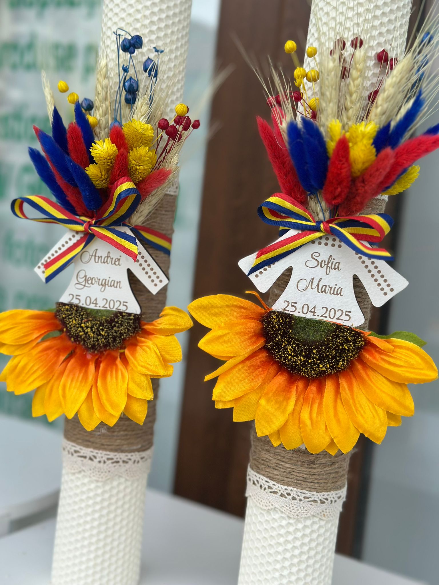 Lumânare elegantă, realizată din ceară de calitate, decorată manual cu flori uscate și trandafiri. Simbol al purității și al credinței, perfectă pentru ceremonia de botez și ca amintire prețioasă.Produsele comandate pe site-ul www.atelieraristocrat.ro sunt realizate într-un termen ce poate varia în funcție de complexitatea lucrării.